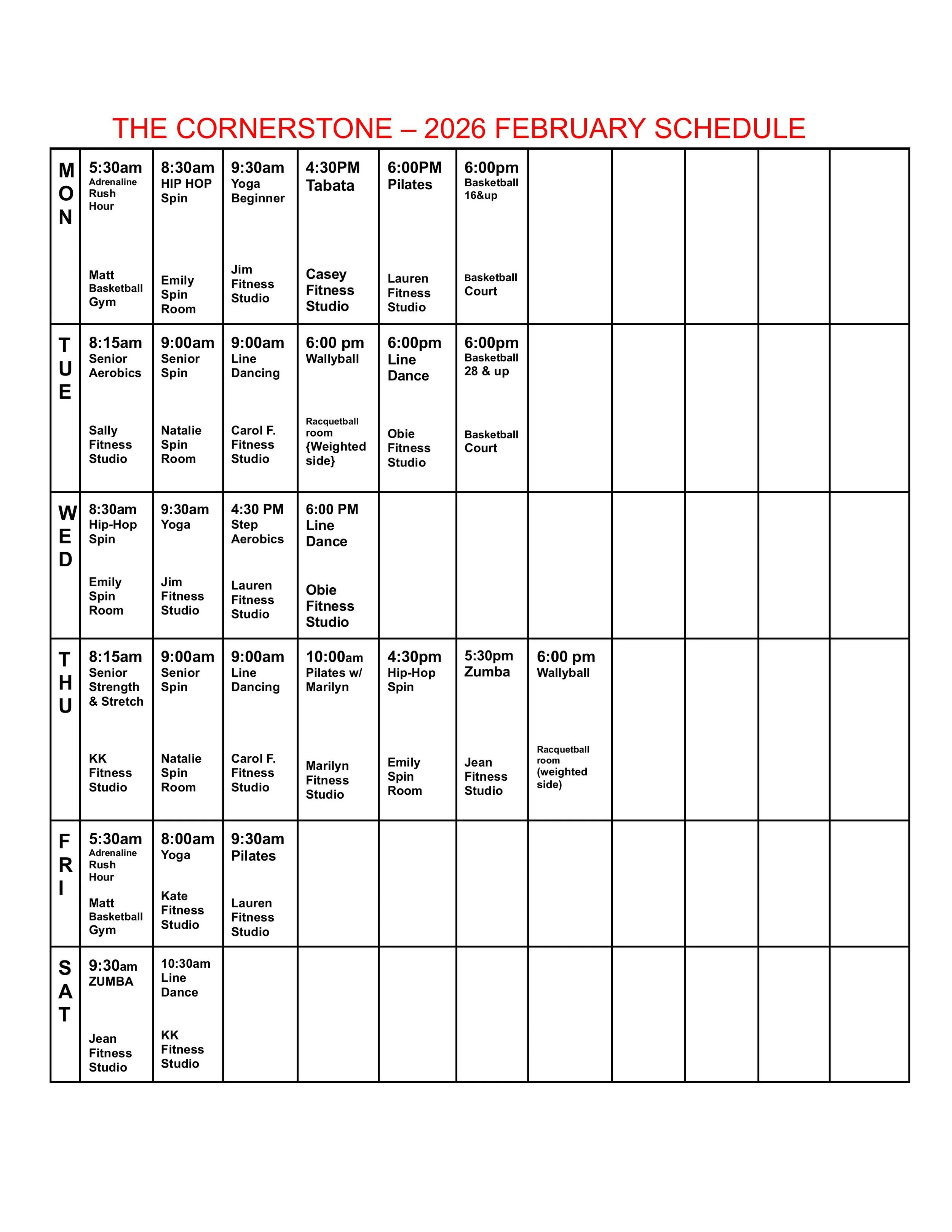 Our weekly schedule is packed with options to keep your workouts fresh and exciting. Join us for everything from Yoga and Pilates to high-energy Zumba and Spin. With Senior Aerobics and comprehensive Group Fitness Training, there's a challenging (and fun!) class waiting for you!
